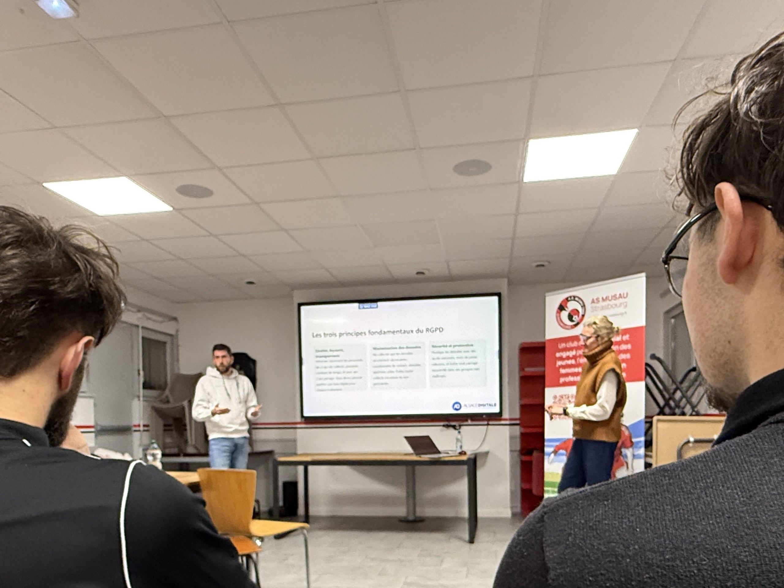 Après une rapide introduction de Bernard (AS Musau), Catherine et Hugo expliquent le cadre du numérique et de la protection des données.