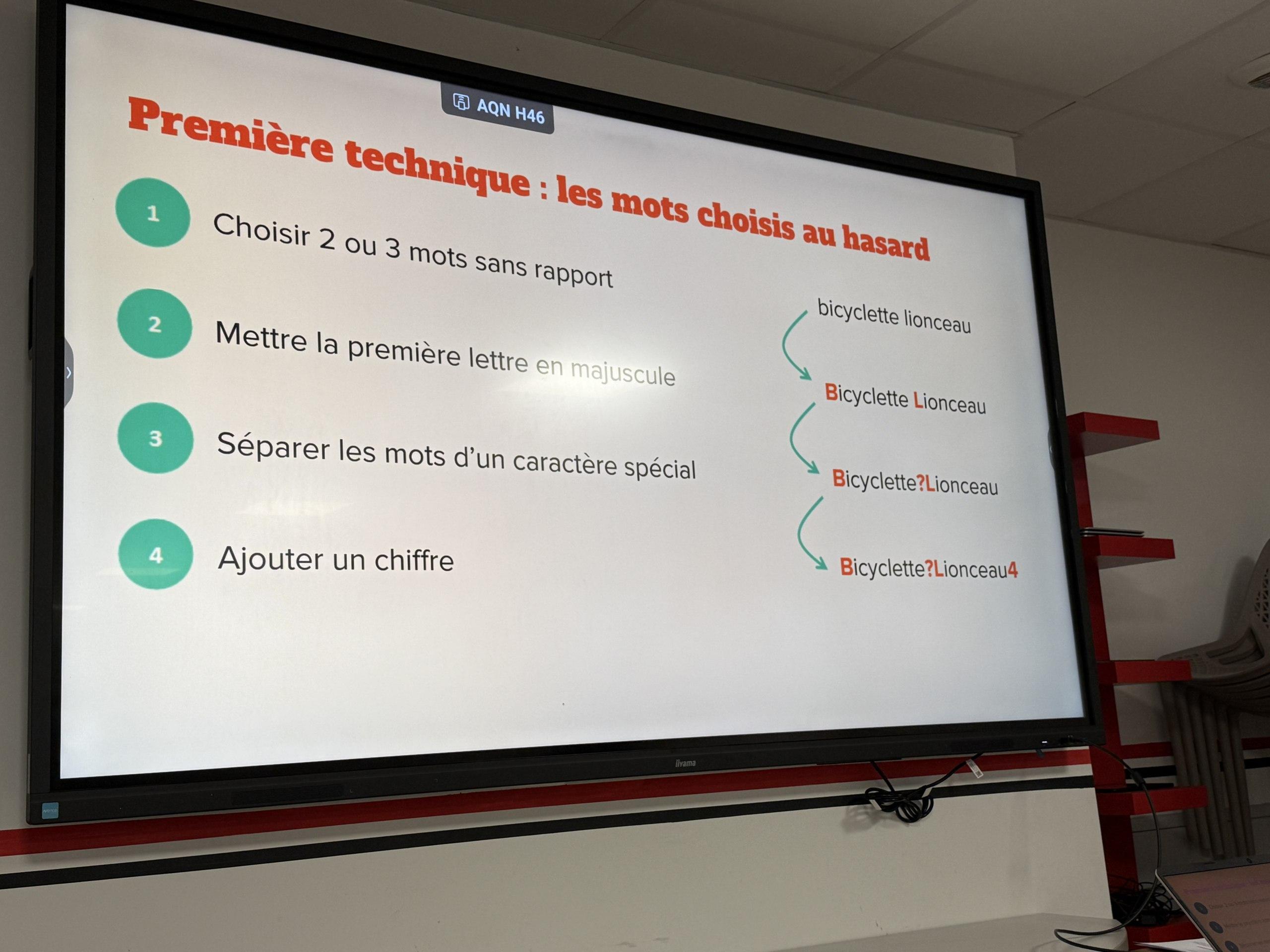Saïd anime un temps de sensibilisation à la cybersécurité. Chiffres et exemples à l’appui, il commence par une explication pédagogique du vocabulaire utilisé : cybersécurité, cyberattaque, virus, ransomware, cheval de Troie, antivirus, phishing.