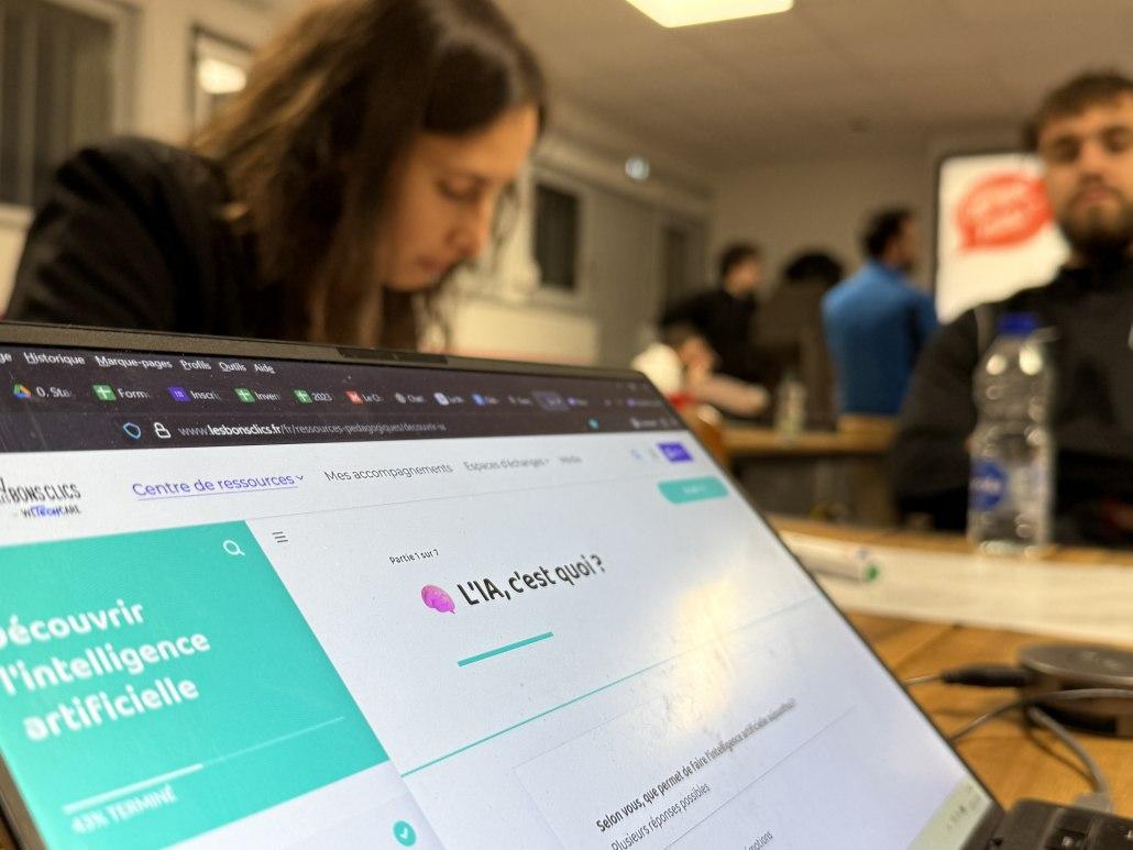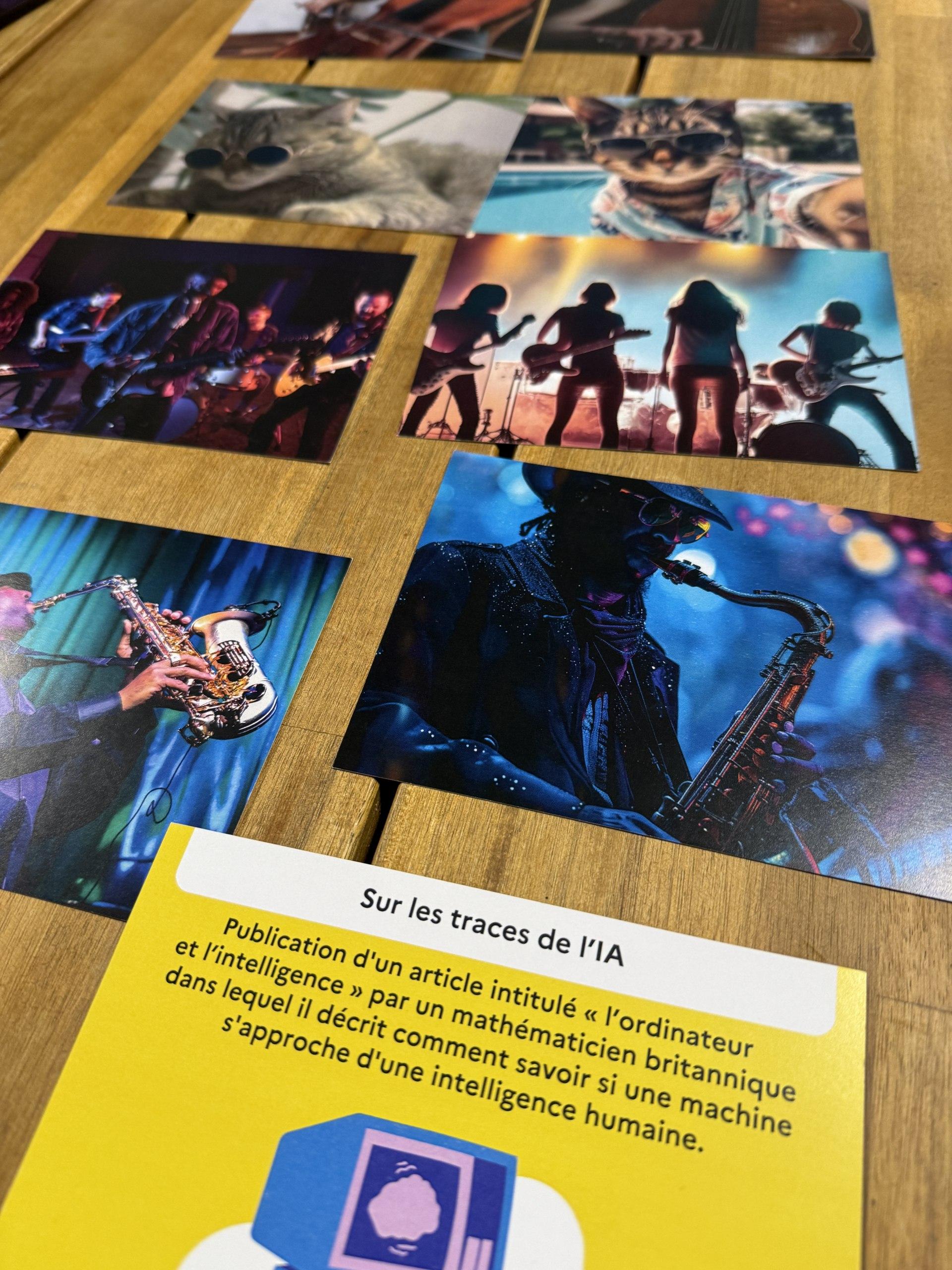Pierre et Lucie ont amené avec eux des jeux de sensibilisation qui permettent à chacun de plonger dans l’histoire de l’intelligence artificielle et des difficultés actuelles pour identifier le vrai du faux, à l’instar de la génération d’images photographiques. Vrai ou fausse photo, pas évident de s’y retrouver.