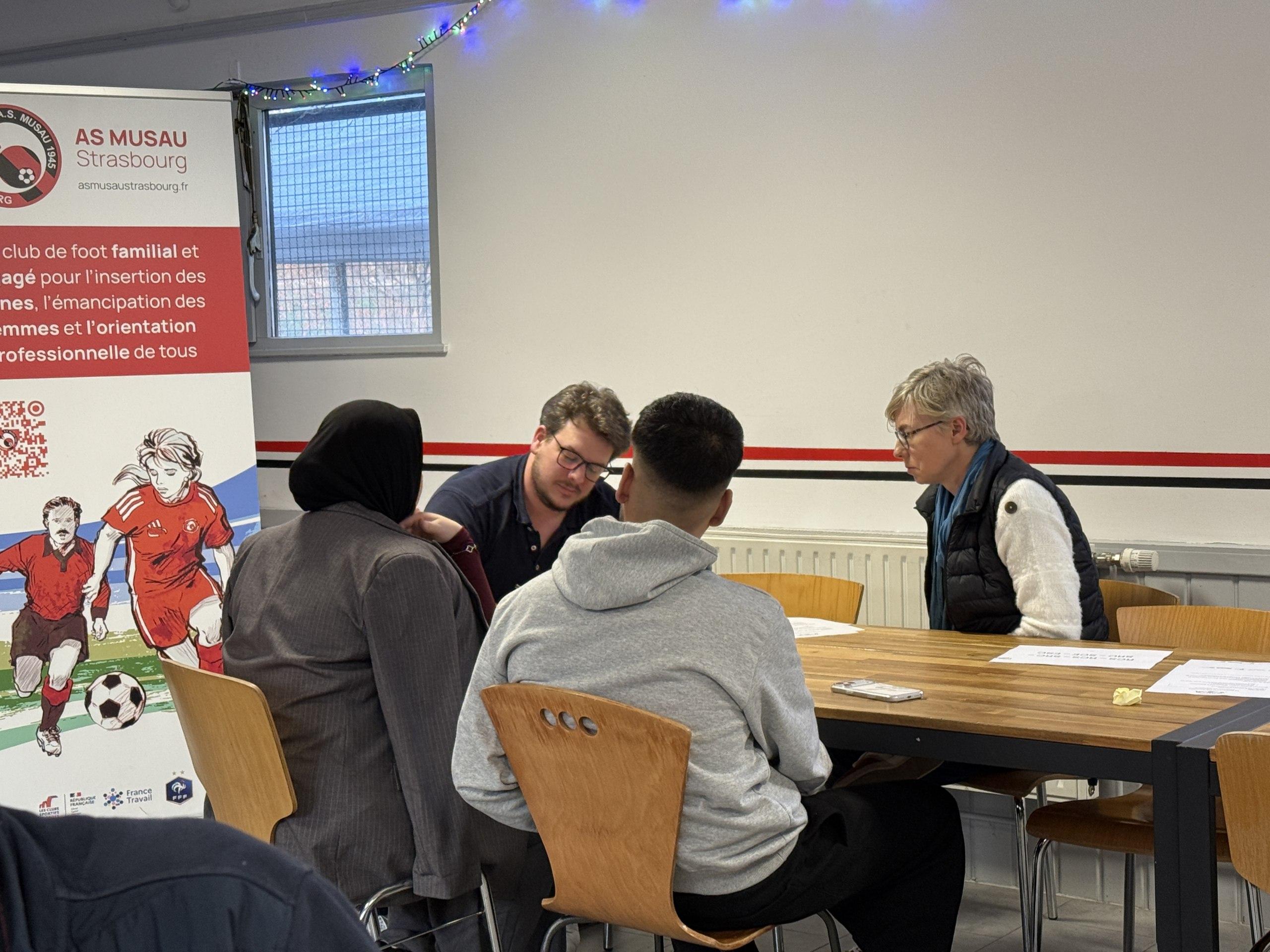 Mardi 9 décembre 2025, 14h, l’AS Musau accueille le cinquième atelier Y-E-A organisé par la Maison de l’Emploi de Strasbourg, sous la houlette de Patricia Lorentz et Guillaume Kieffer.