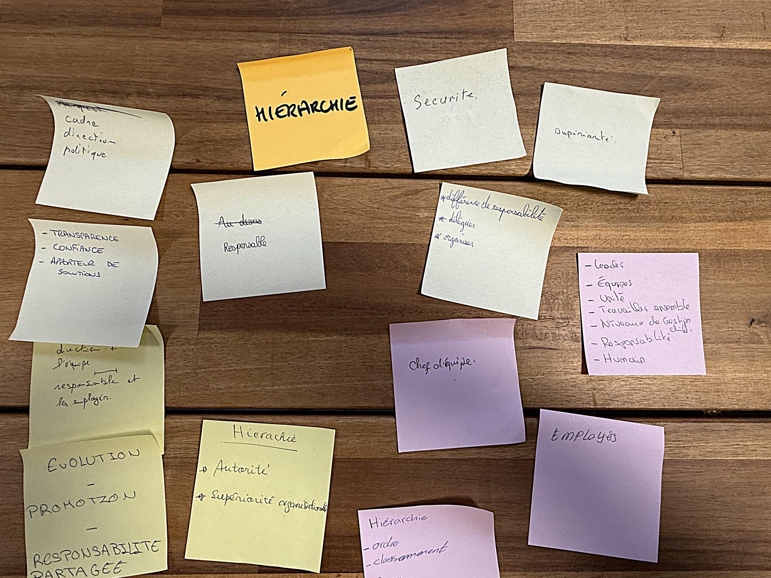 Marie demande d’abord à chaque sous-groupe de réfléchir et d’échanger autour des notions de « Management », puis de « Hiérarchie ».